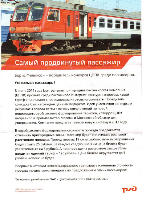 Новые тарифы на электричку, мне дали рекламу в электричке